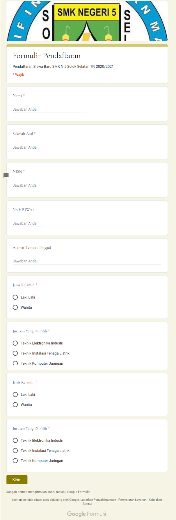 - Setelah itu isi formulir dengan data yang benar, kemudian klik "Kirim".
