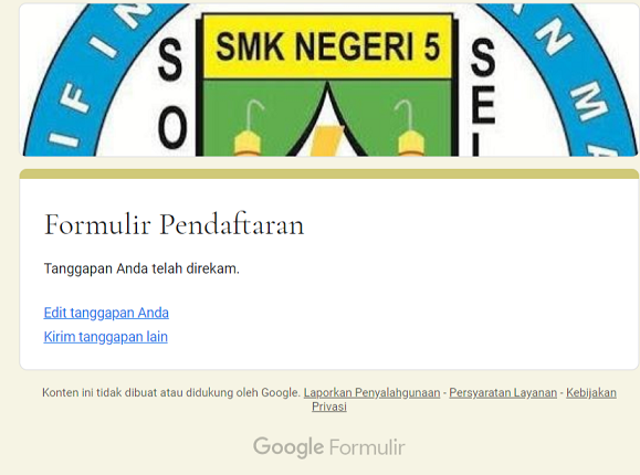 - Jika ada data yang ingin di rubah, klik "Edit tanggapan Anda", kemudian rubah data, dan klik "Kirim".